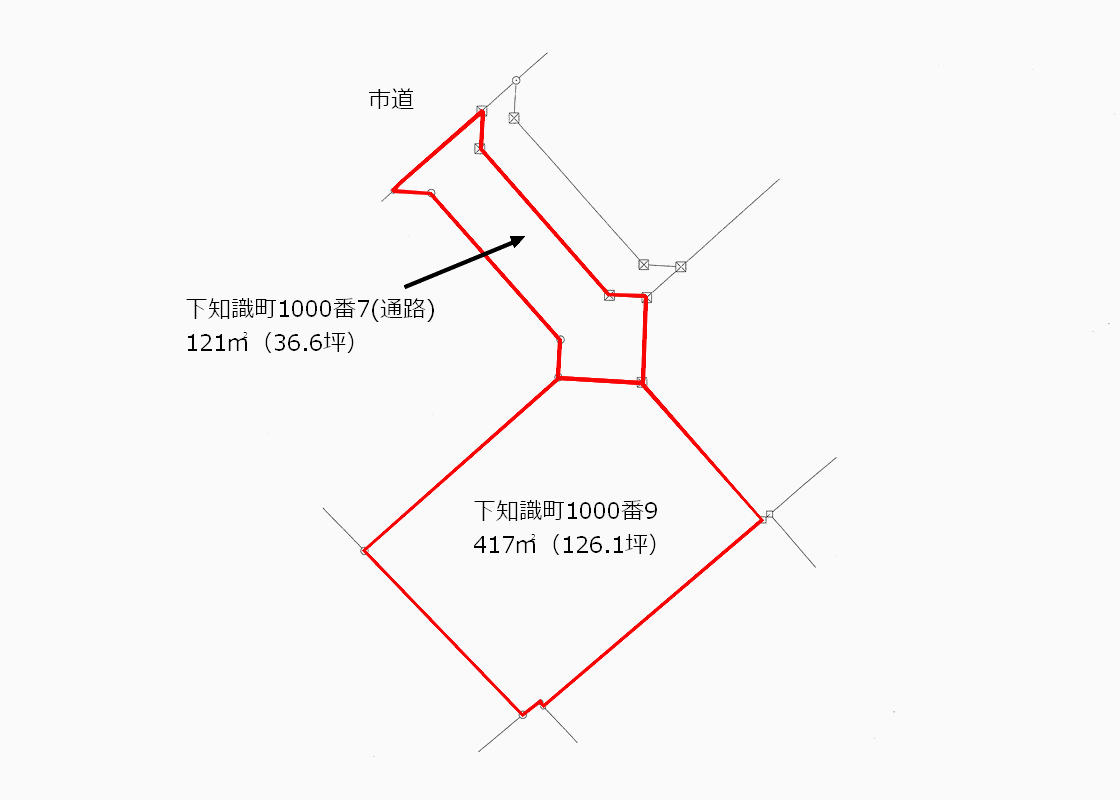 通路部分(121㎡)持分2分の1も併せての売買となります。
